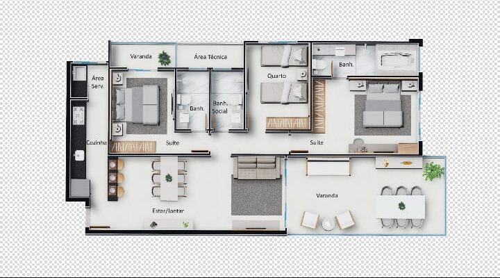 Viva o privilégio de morar entre a Prainha e a Praia do Morro em um projeto paradisíaco. Apartamentos de 114,59m² com 3 quartos (2 suítes), sala e cozinha independentes e uma varanda com vista definitiva para o mar.