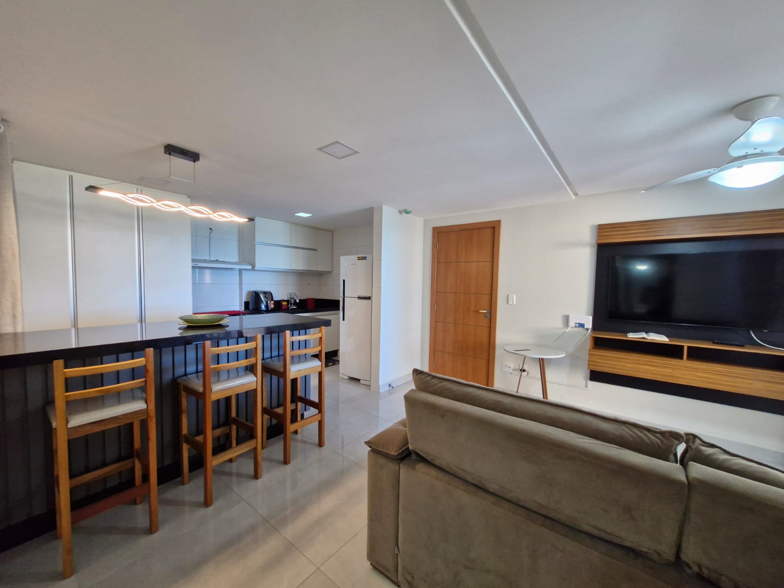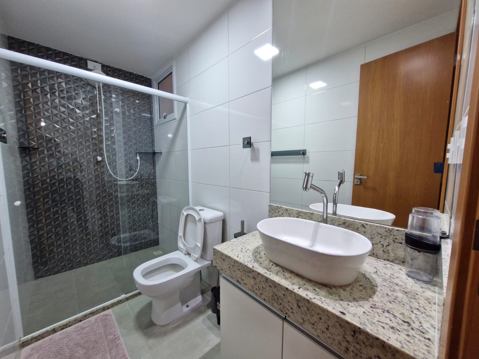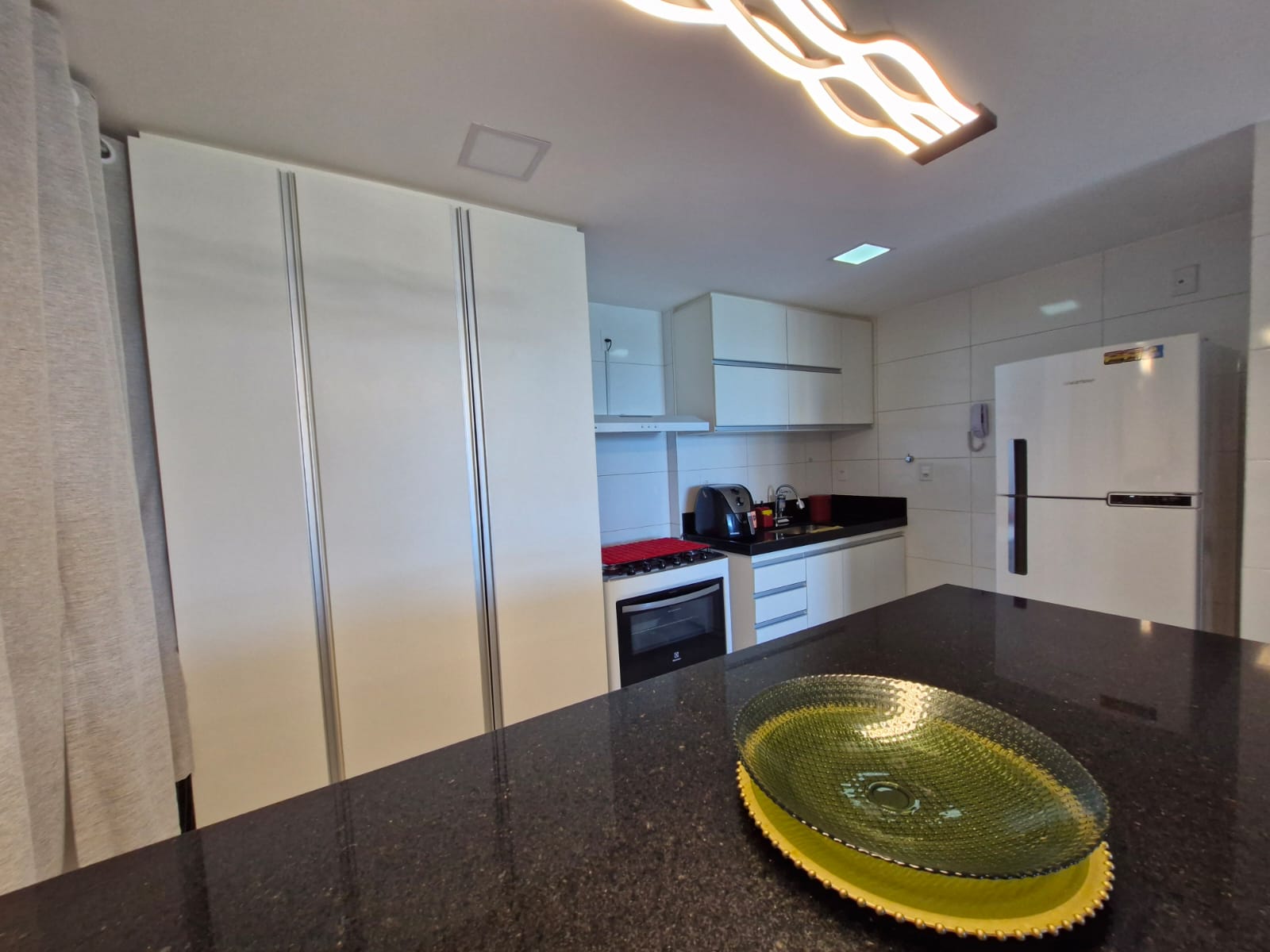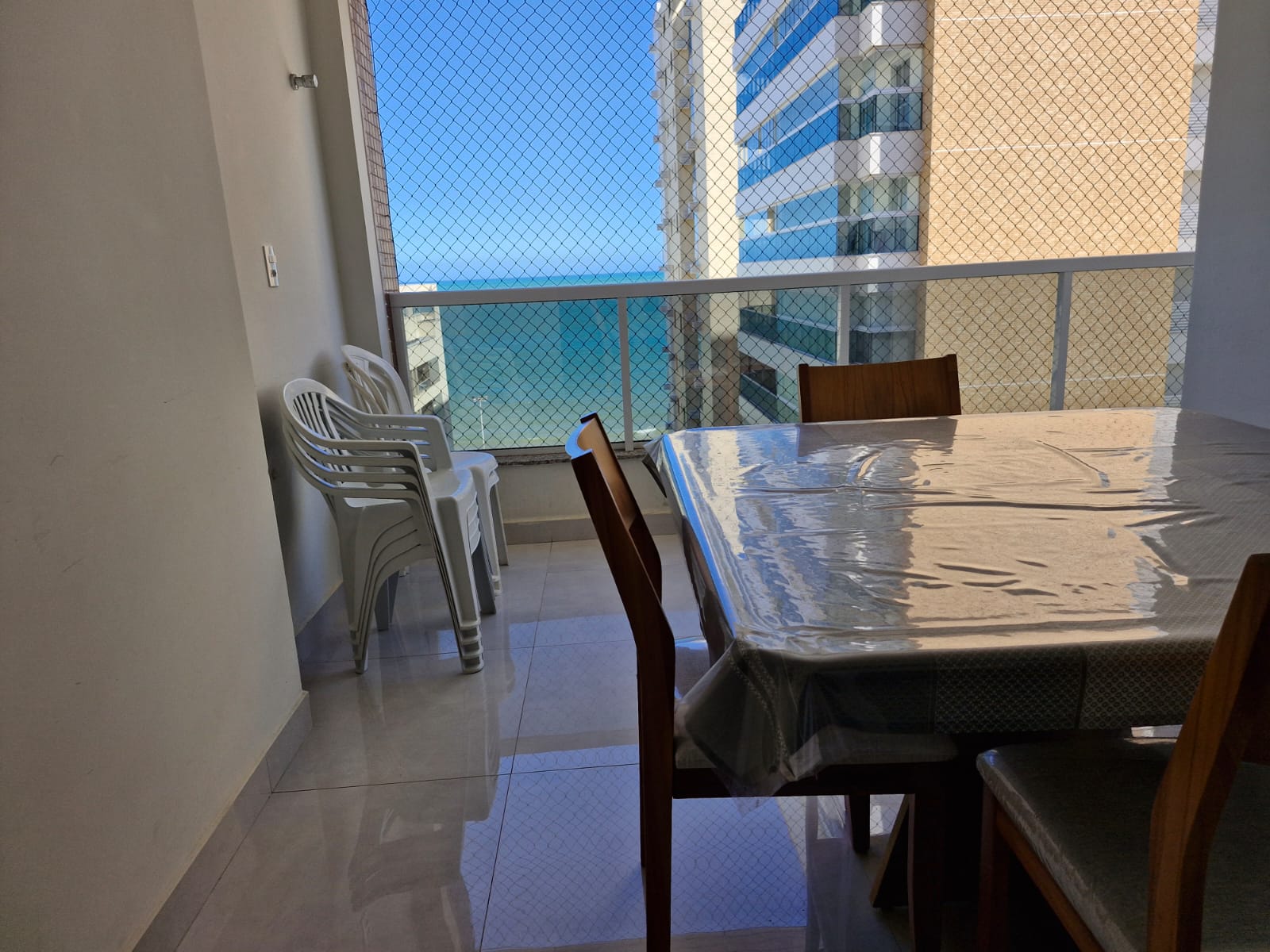 Apartamento composto por 03 quartos sendo 01 suite, banheiro social, sala de estar/jantar, varanda com tela de proteção e vista para o mar, cozinha toda equibapada, area de serviço e 02 vagas de garagem.