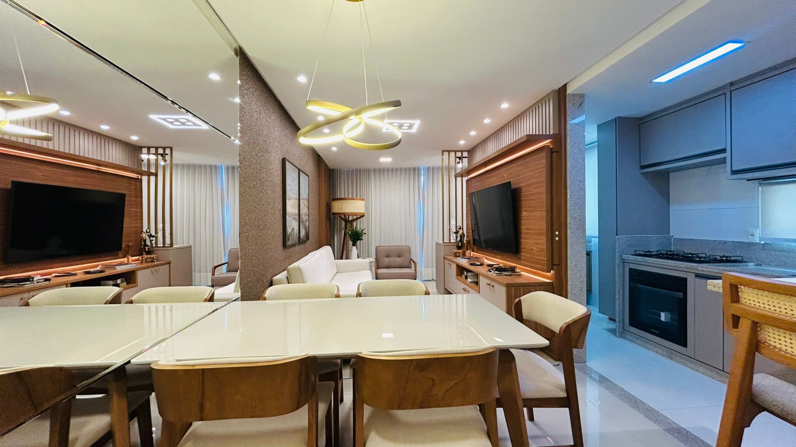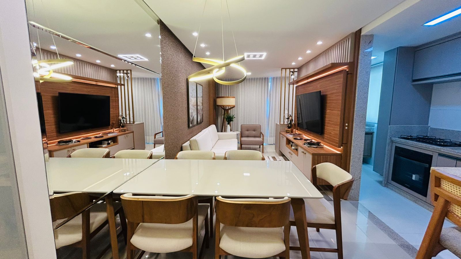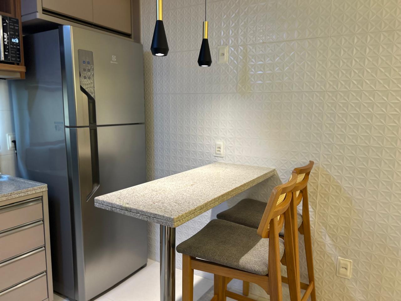 • Cozinha totalmente equipada com cooktop, forno elétrico, micro-ondas e geladeira, tudo novo e moderno.