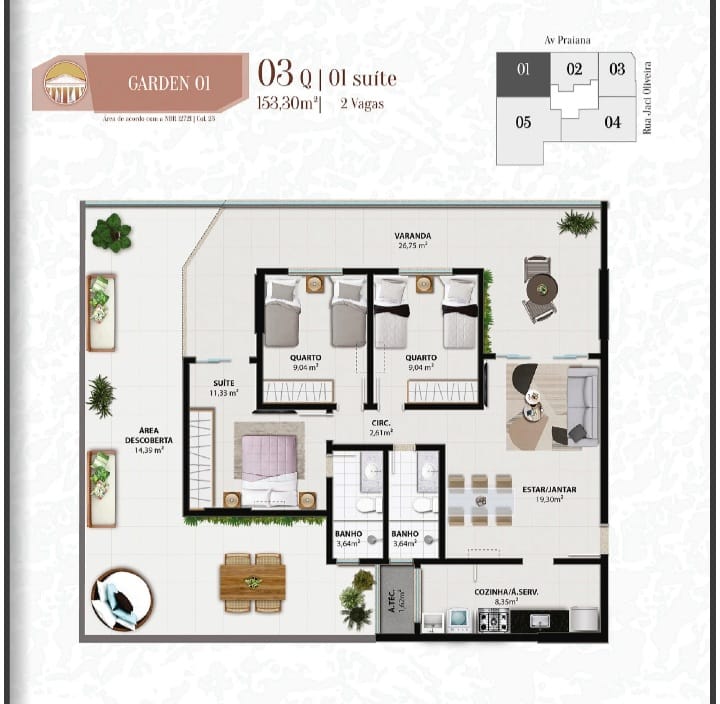 Apresentamos um projeto na planta que redefine o aproveitamento de espaço. Localizado em um dos pontos mais estratégicos e desejados da cidade, este apartamento foi desenhado para quem busca um refúgio moderno, com a conveniência de estar perto de tudo, mas com a privacidade que só uma rua selecionada oferece.