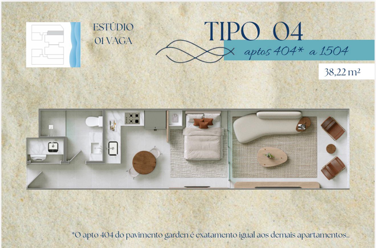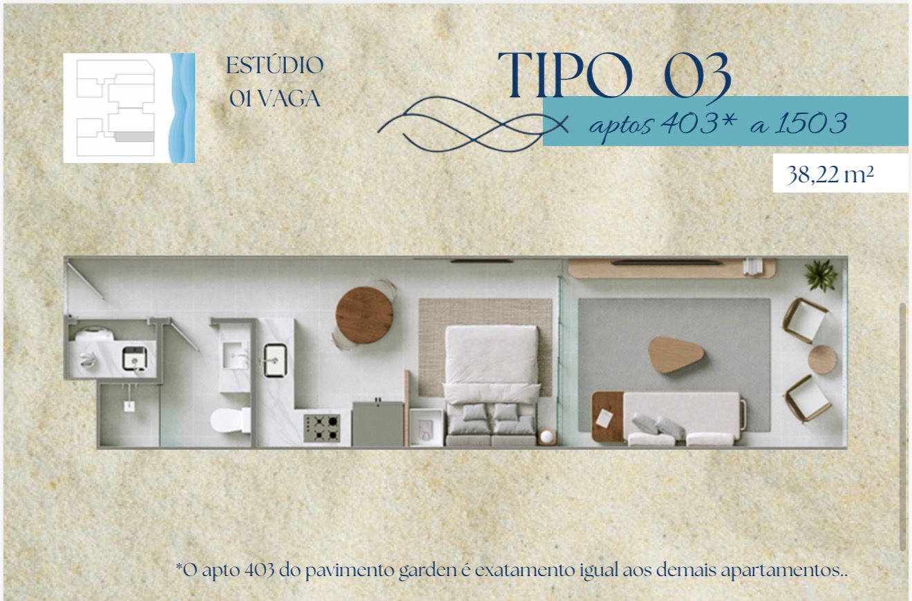 A praticidade do conceito Studio encontra a sofisticação da beira-mar. Localizado na desejada Praia da Cerca, este lançamento é a escolha definitiva para quem busca um refúgio moderno ou um investimento estratégico com alta liquidez em Guarapari.