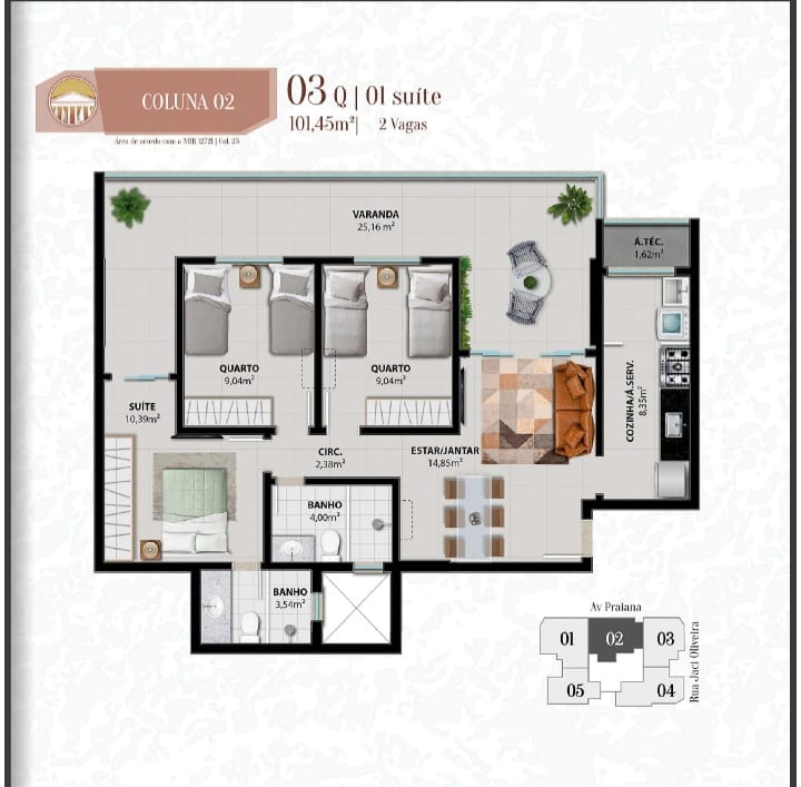 • 3 Quartos de Alto Padrão: Sendo uma Suíte Master privativa para momentos de descanso.