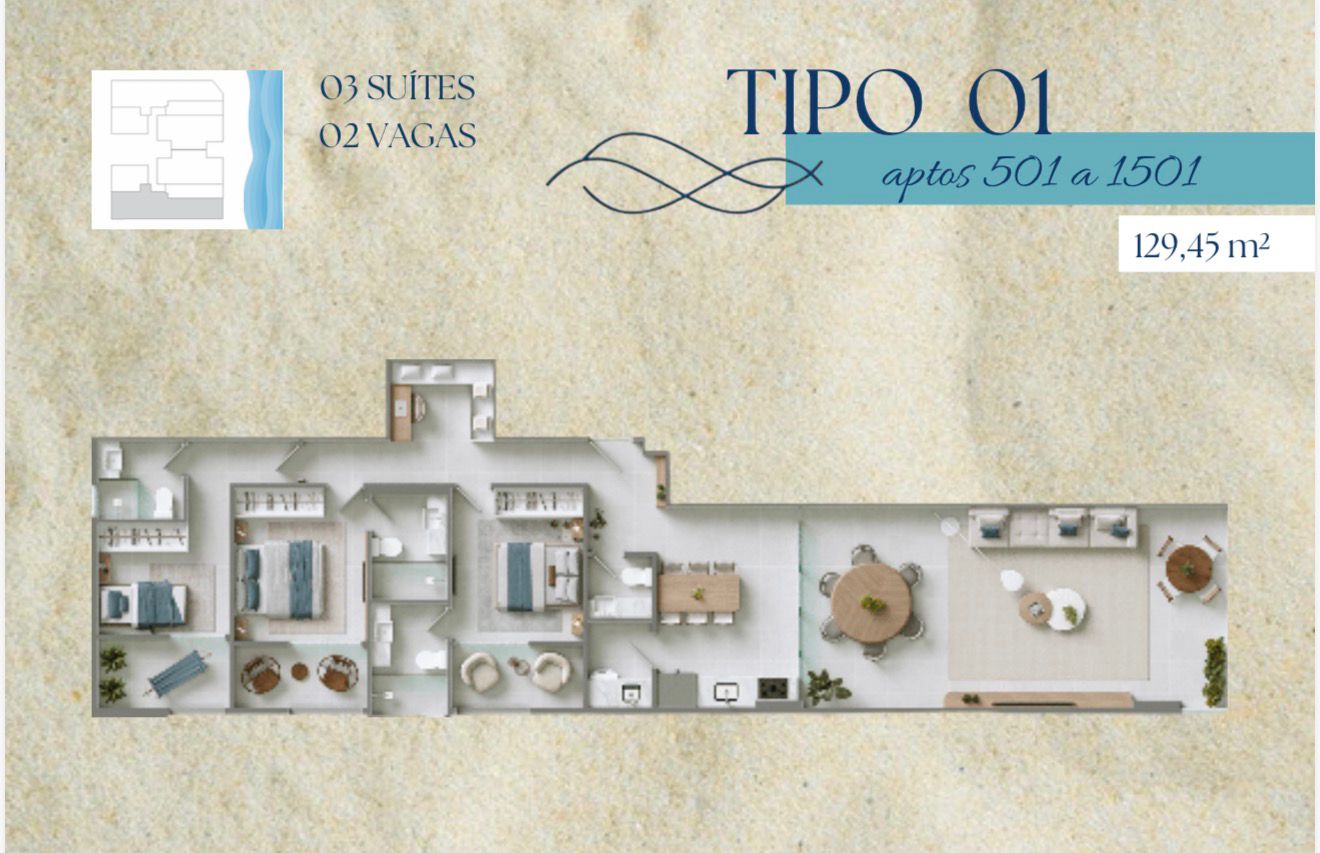 Já imaginou acordar todos os dias com o som do mar e a brisa da Praia da Cerca em Guarapari? Este lançamento redefine o conceito de viver bem, unindo luxo, praticidade e uma localização privilegiada frente mar. O Apartamento:
