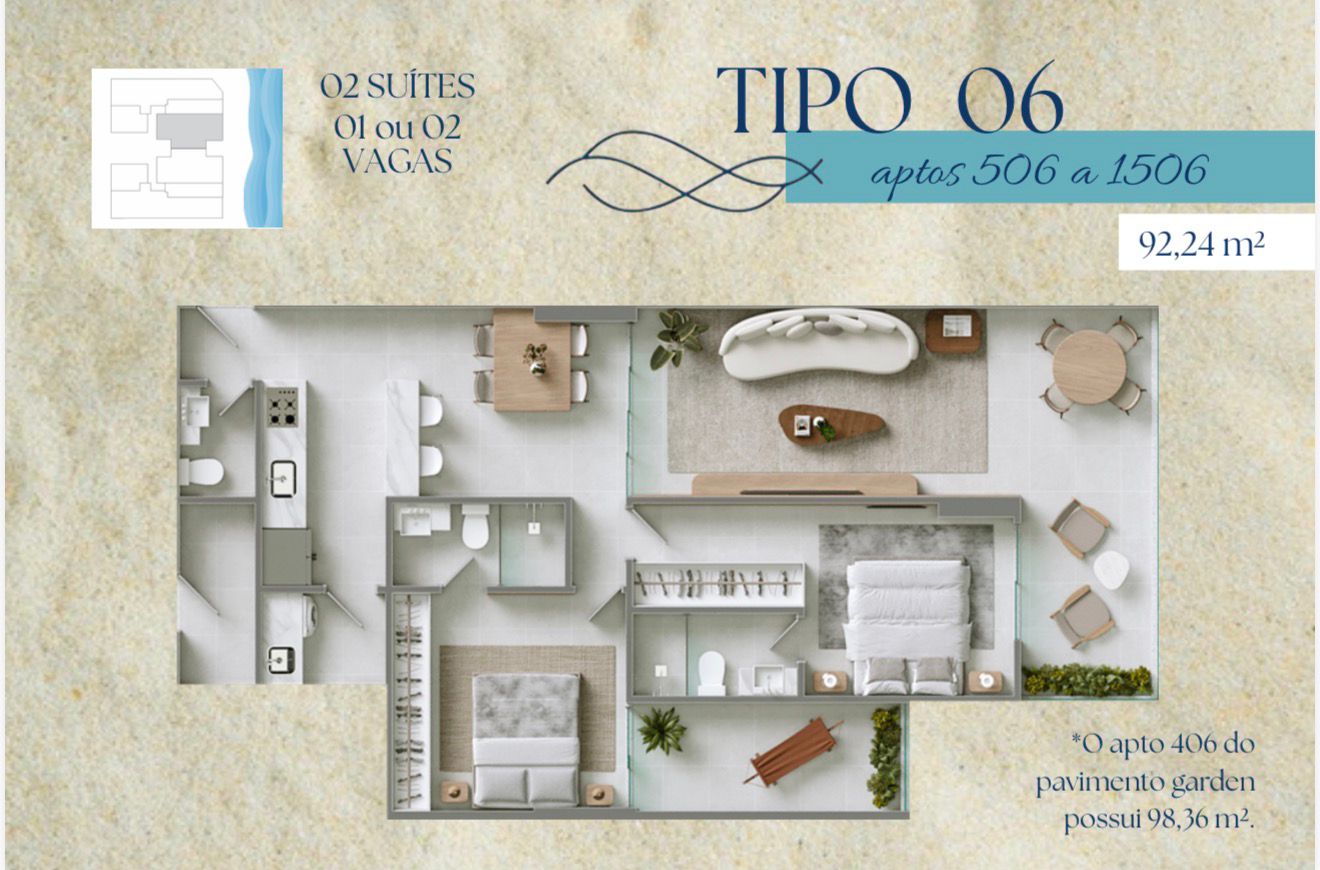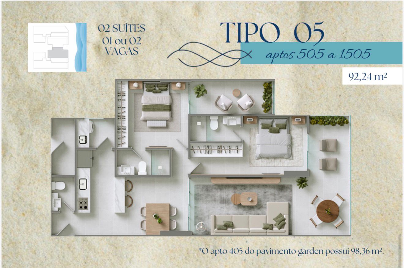 Para quem busca o privilégio de morar beira-mar com inteligência e sofisticação. Este lançamento na Praia da Cerca traz uma planta otimizada, perfeita para quem não abre mão do conforto de suítes privativas e uma área de lazer de tirar o fôlego.