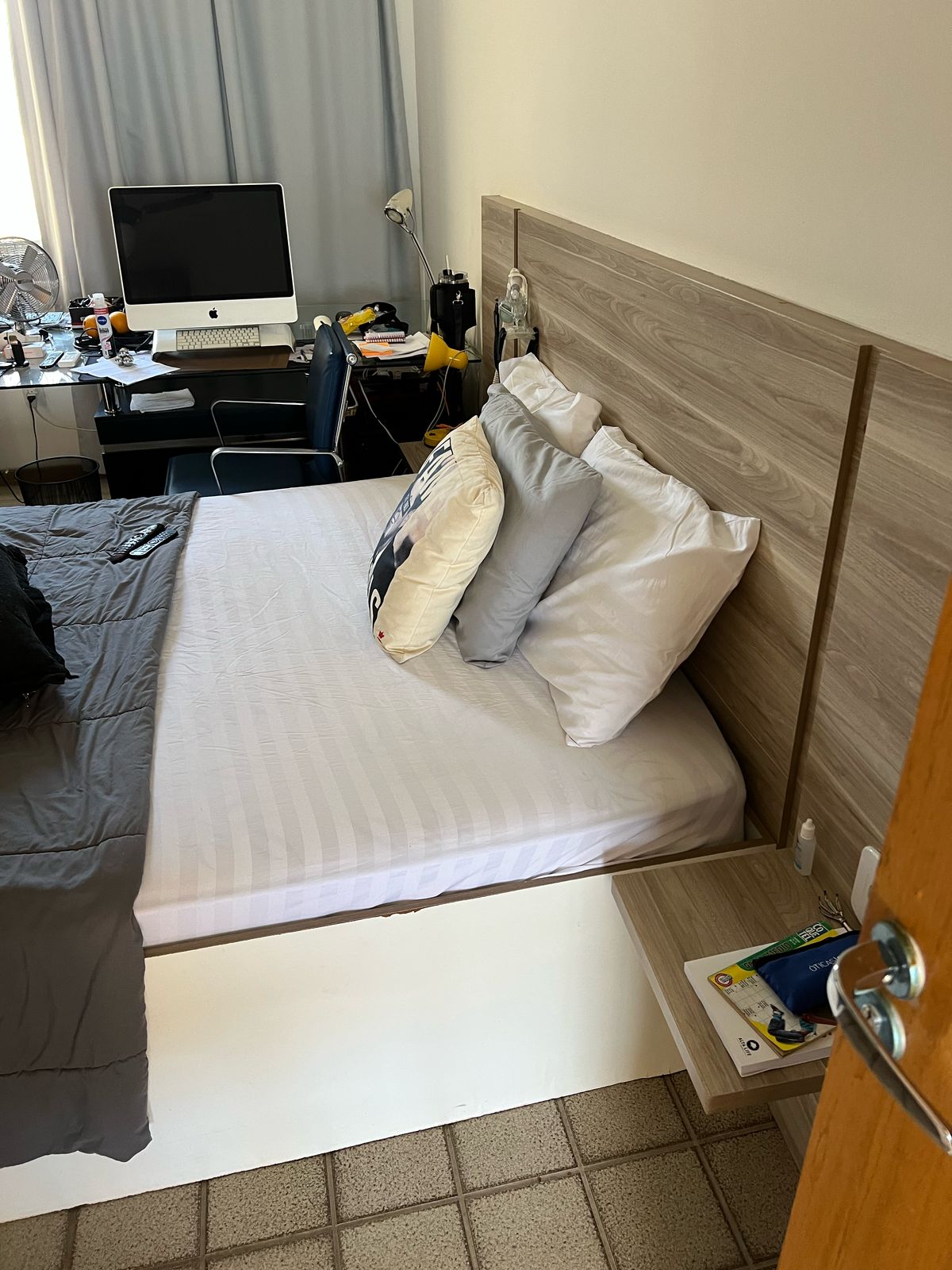 Assim como no primeiro pavimento, todos os ambientes são climatizados com ar condicionado recém-instalado, e o quarto possui a opção de ventilador de teto.