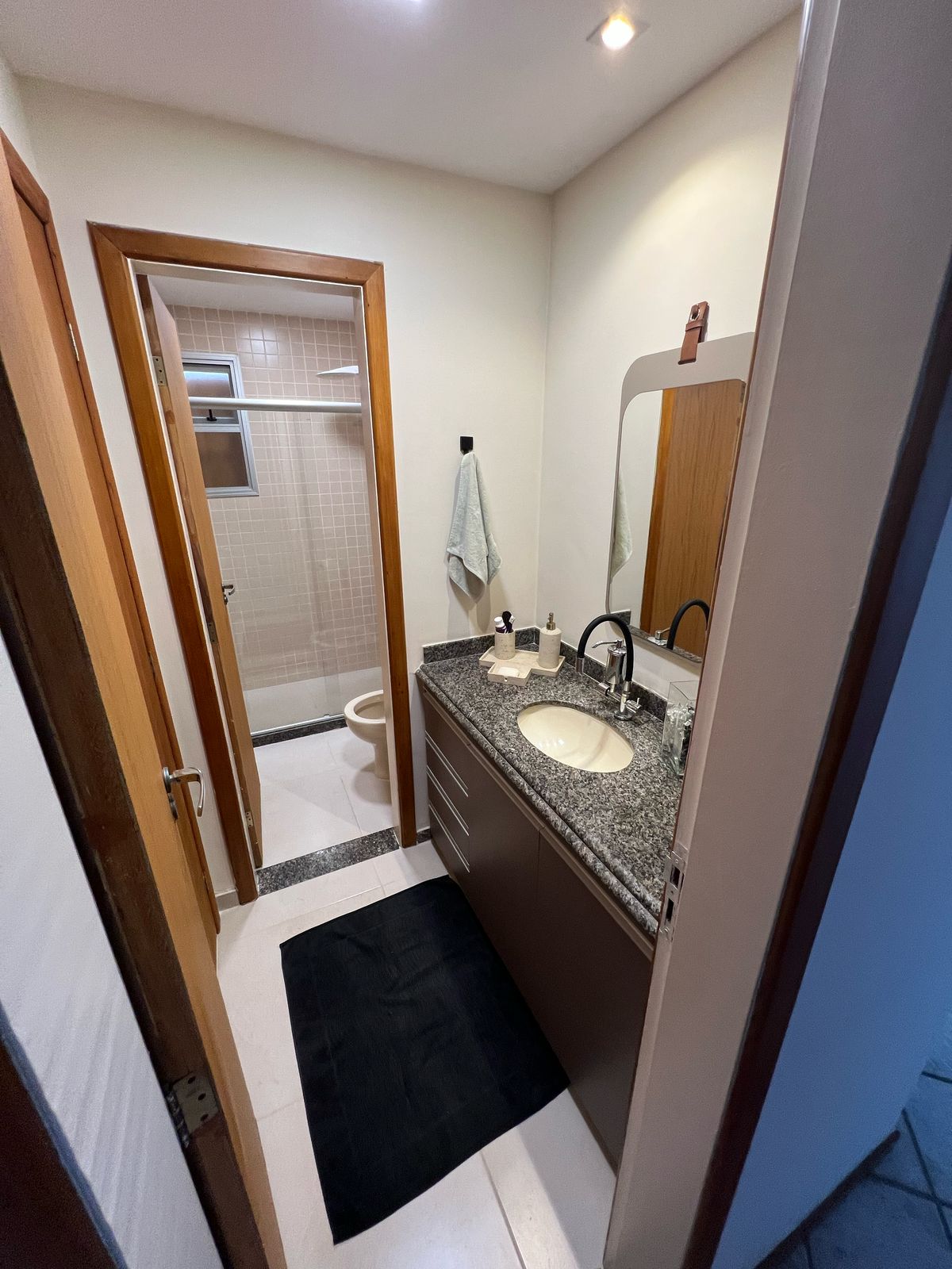 - Banheiros Modernos: São três banheiros no total, sendo um deles do tipo canadense, que atende diretamente a uma suíte e indiretamente ao quarto e à sala.