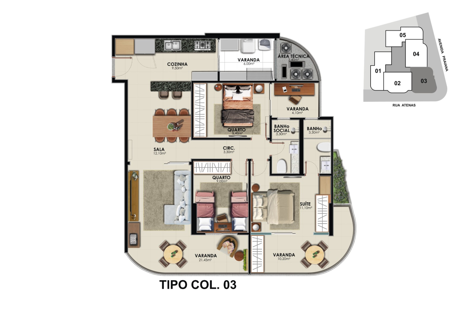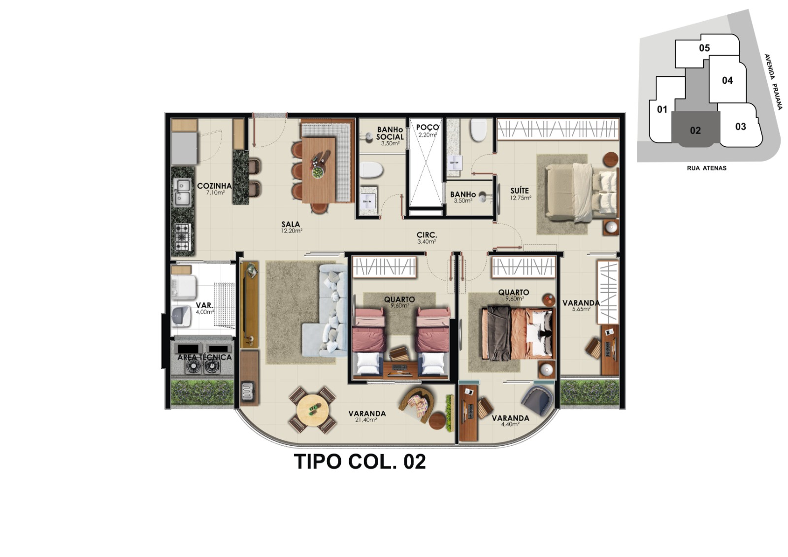 As plantas inteligentes de 3 quartos oferecem opções versáteis de 1 ou 2 suítes (canadense), e o conforto é completado pelas 2 ou 3 vagas de garagem por unidade.